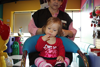 I am happy with the results and I think the lady did a nice job. She predicted that Miss Lucy will most likely have some curls, or at least a bit of a wave when all of her hair grows in. Cory and I have suspected the same thing because we usually see some curls when her hair is wet or in very humid weather!! Only time will tell...